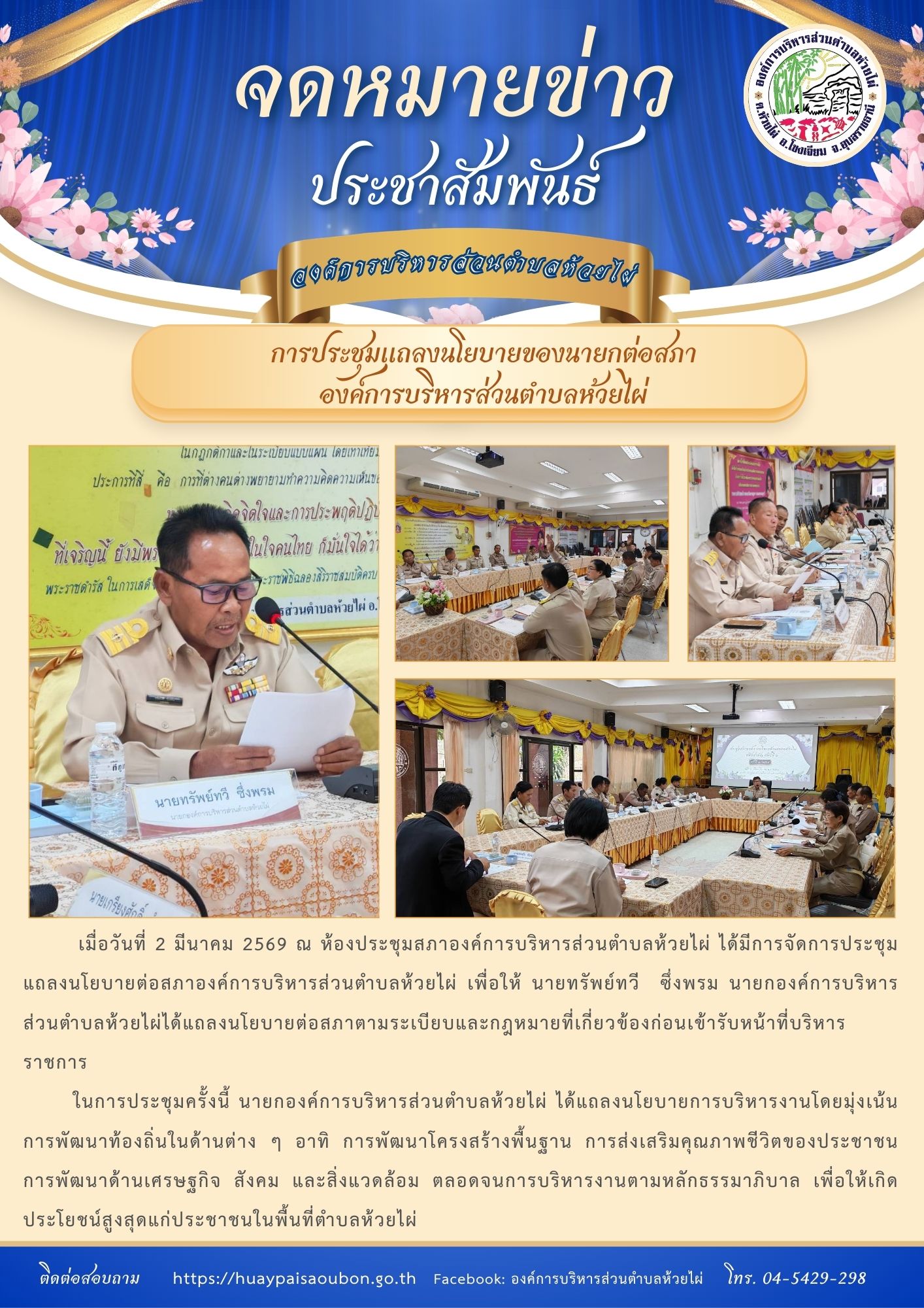 - การประชุมแถลงนโยบายของนาก อบต.ห้วยไผ่ ครั้งแรก ต่อ สภา อบต.ห้วยไผ่ , 6 มีนาคม 2569