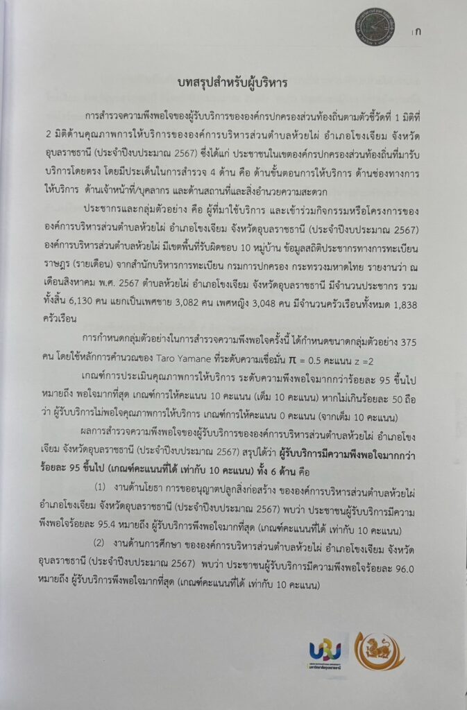 รายงานผลการสำรวจและประเมินผลความพึงพอใจของผู้รับบริการ ประจำปีงบประมาณ 2567